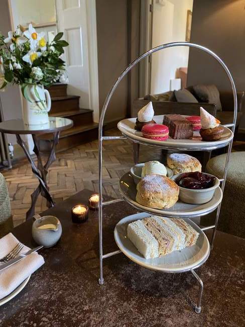 The menu consists of savoury treats such as sausage roll, scotch eggs and charcuterie, and the sweet treats including a freshly baked homemade scone with jam and clotted cream, and a selection of cakes. Vegan and Gluten-free afternoon teas are also available. You can upgrade your tea with organic prosecco or champagne from £6 per glass.