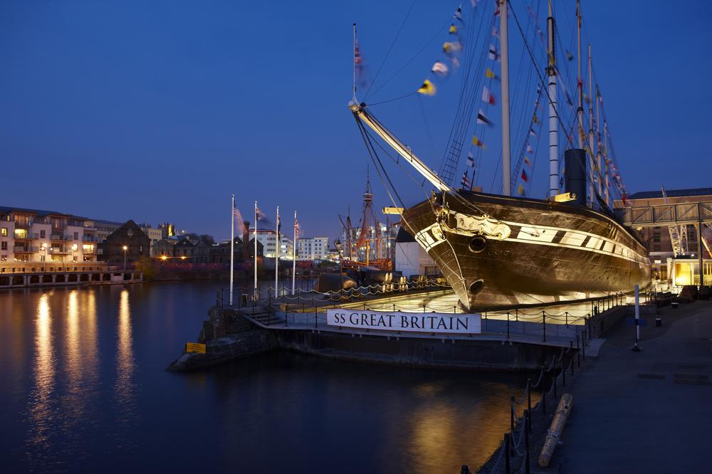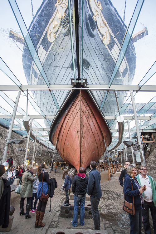 ss Great Britain is displayed in an innovative dry dock with a glass sea - which allows you explore beneath the waterline and see a view of the ship that would normally be hidden from view.