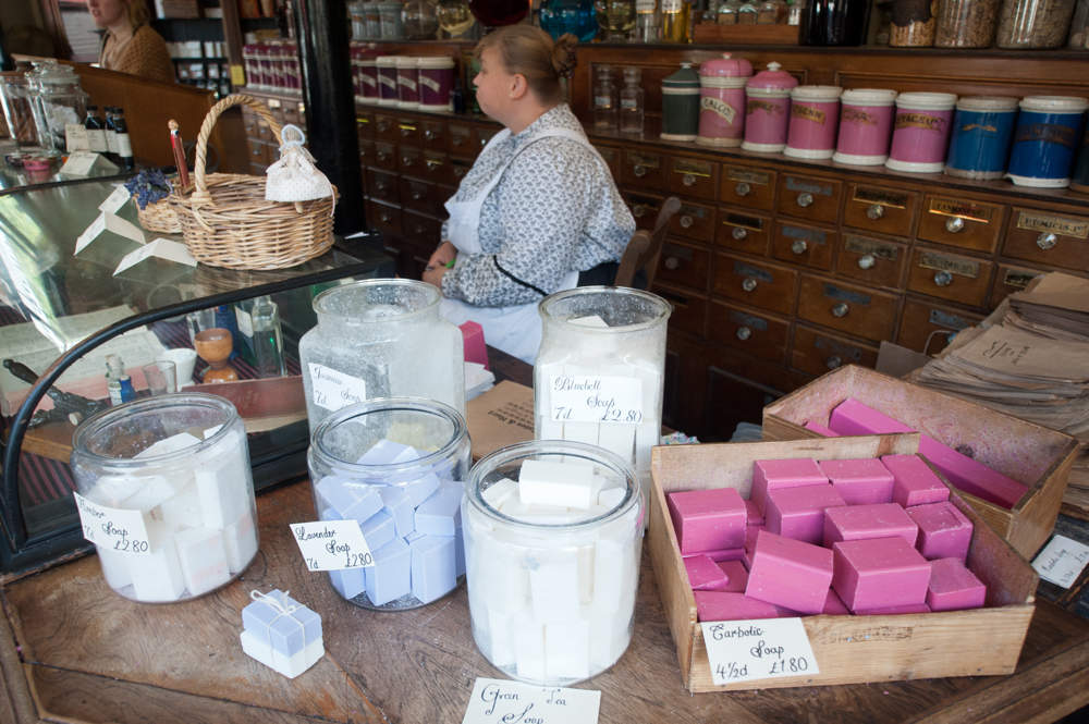 a traditional pub, a school, a milliner and dress maker, a butchers shop, a post office, a bakery (selling bread), a sweet shop (selling old-fashioned sweets), a chemist and a fish and chip shop.The shops are run by people in authentic Victorian costume, so you really get a good feel for shopping in a Victorian town.