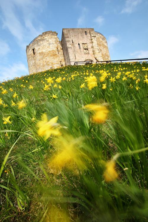 The walls of this round tower are all that remains of the original motte and bailey castle which was built by William the Conqueror in 1086, overlooking the River Ouse on one side and the River Foss on the other.