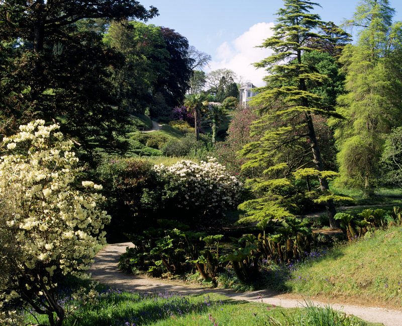 Tulip trees, a Japanese loquat, a weeping Mexican cypress, bamboo, gunnera, tree ferns and a multitude of tender camellias, magnolias and rhododendron species have flourished and now make a splendid show all year round.