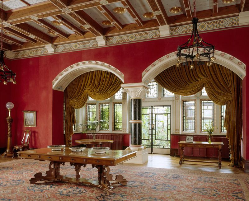The superb Victorian home was originally designed by William Burges, a well-known church architect, in 1869 and he included the Gothic pediments and gargoyles which can be enjoyed today. He was eventually replaced by John Dibley Crace who completed the interior of the house in less elaborate Romantic style, but still with a richness of colour which is rarely seen today.