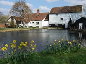 The 18th C water mill, the last working watermill in Suffolk and now owned by the Suffolk Building Preservation Trust, is on a Domesday site. Here, for almost a thousand years, millers have been using the simple technology of water power to produce stone-ground wholemeal flour from locally-grown wheat. The mill is maintained and operated by a team of dedicated volunteers who continue the tradition.