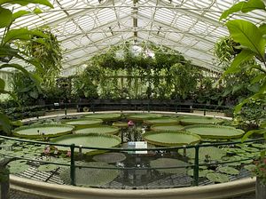 The Princess of Wales Conservatory, opened in 1987 contains plants growing in 10 climatic zones. There is also an underground exhibition hall, showing an ecological slide show. Largest of the glass houses is the Temperate House, where you can see beautiful blooms, originating from South Africa and the Caribbean. Newest of all is Evolution House; in its hi-tech atmosphere visitors are taken on a 3,500 million year journey, telling the story of the evolution of the planet.