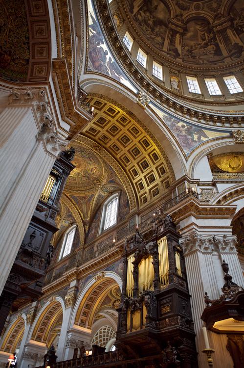 One of the largest Cathedral domes in the world 111.3 meters high, weighing 65,000 tonnes it is supported by eight pillars.The frescos, which decorate the interior of the dome are by Sir James Thornhill.