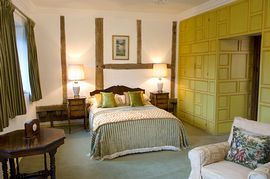 Breakfast is served in the beamed Dining Room off the C12th Hall or on the terrace under the vine in summer and includes eggs from the orchard hens and sausages from home-reared Old Spot pigs.