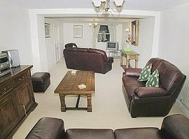It is fully centrally heated with a cosy living room with an open fire with TV, DVD, radio and CD player and original window shutters. There is a large sitting room and dining room. A well equipped modern kitchen that includes microwave, dishwasher, double oven, fridge and freezer. The utility room contains a fully automatic washing machine and tumble dryer.