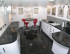 The Kitchen is accessed via spiral staircase with electric oven and hob, microwave, fridge, freezer, dishwasher and washing machine.