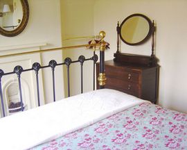 This lovely cottage has two bedrooms; a double, with a stunning Victorian-style brass bed, and a single bedroom. The bathroom has a Victorian style bath and hand-held shower, with marble tiled floors that benefit from under-floor heating and a heated towel rail.