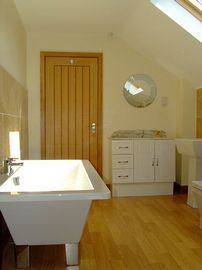 Sleeps: 6 Bedrooms: 3 Cot Available: No Pets Allowed: No. Smoking Allowed: No. Linen Provided: Yes. Bed linen, One hand towel and one bath towel per guest. Central Heating: Yes. Fuel type: Oil Open Fire: No. Disabled Facilities: No. Although we do not list as having disabled facilities we do have a ground floor bedroom with a king size bed, a ground floor shower room, and the access from the parking to the building is all on level ground, we are a new build therefore all door ways comply with 2008 building regs and should take a standard width wheelchair Outdoor Facilities: Yes. We have a terraced patio, a small lawned area and a log cabin which has a games table and some outside chairs for your use Local Services: A village shop, post office, take away and pub all within 1 mile. | |||