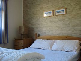 BEDROOMS: Bed configurations differ in chalets, with some having double bed and single bed in each room. Others having - two singles and one double, with double bed settee in lounge. TV in one bedroom.