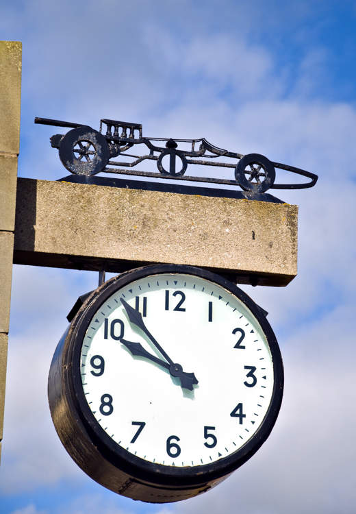 The Chirnside name is surrounded by a champion's winning laurel wreath and atop is a carved replica of a racing car.