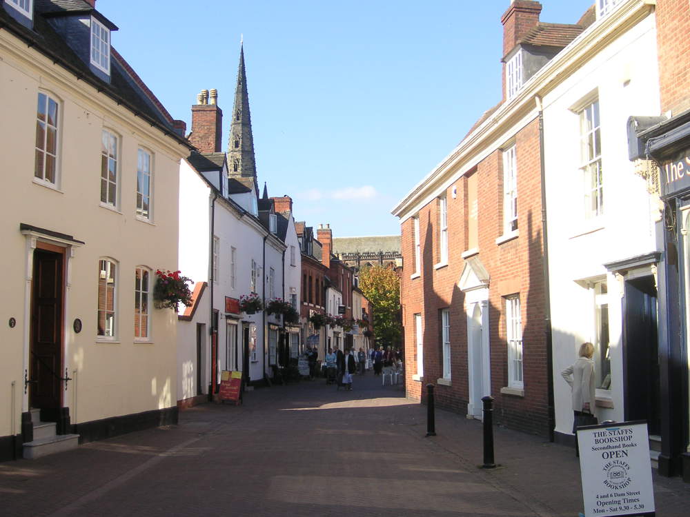 Located in southern Staffordshire, Lichfield has grown rapidly since the 1950s but retains a peaceful and stately charm due to its historic streets and buildings.